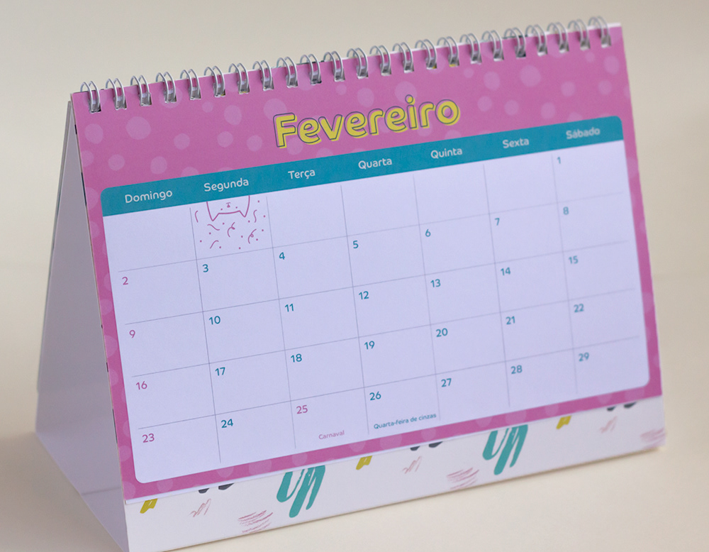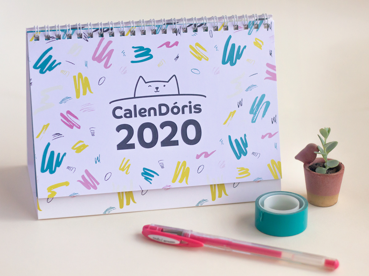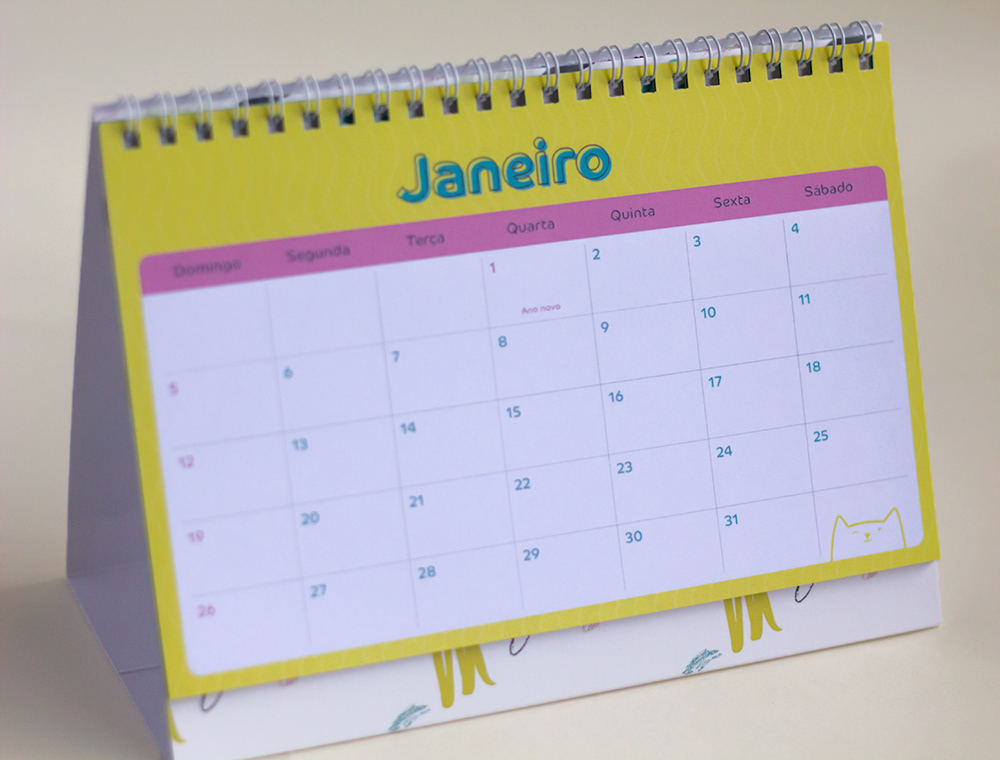 Criação e diagramação de calendário e planner para arrecadar dinheiro para ajudar no tratamento da gatinha Dóris.