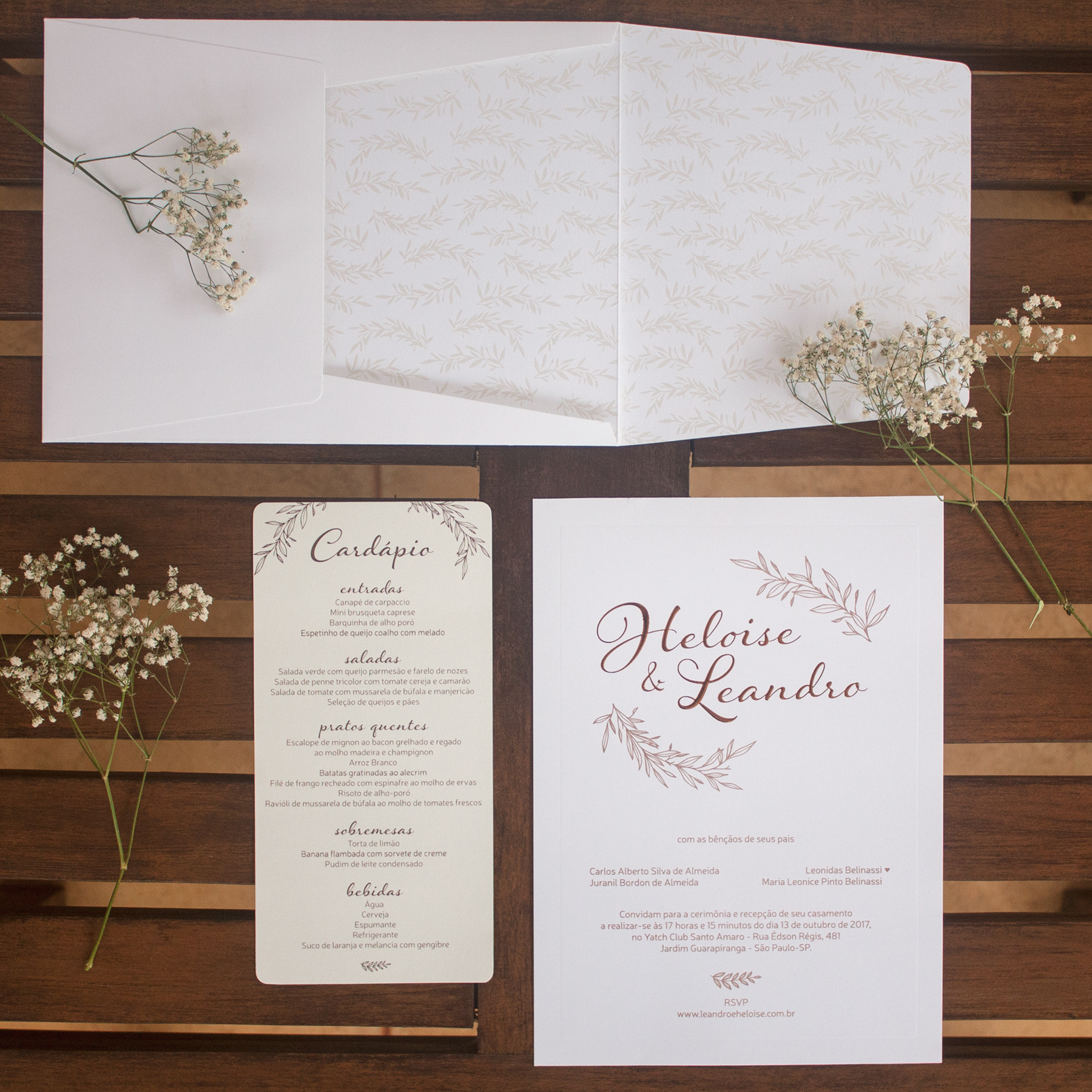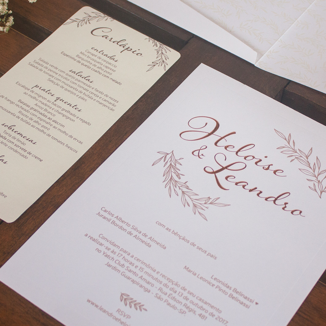 Convites e papelaria para casamento criados em parceria com as noivas.